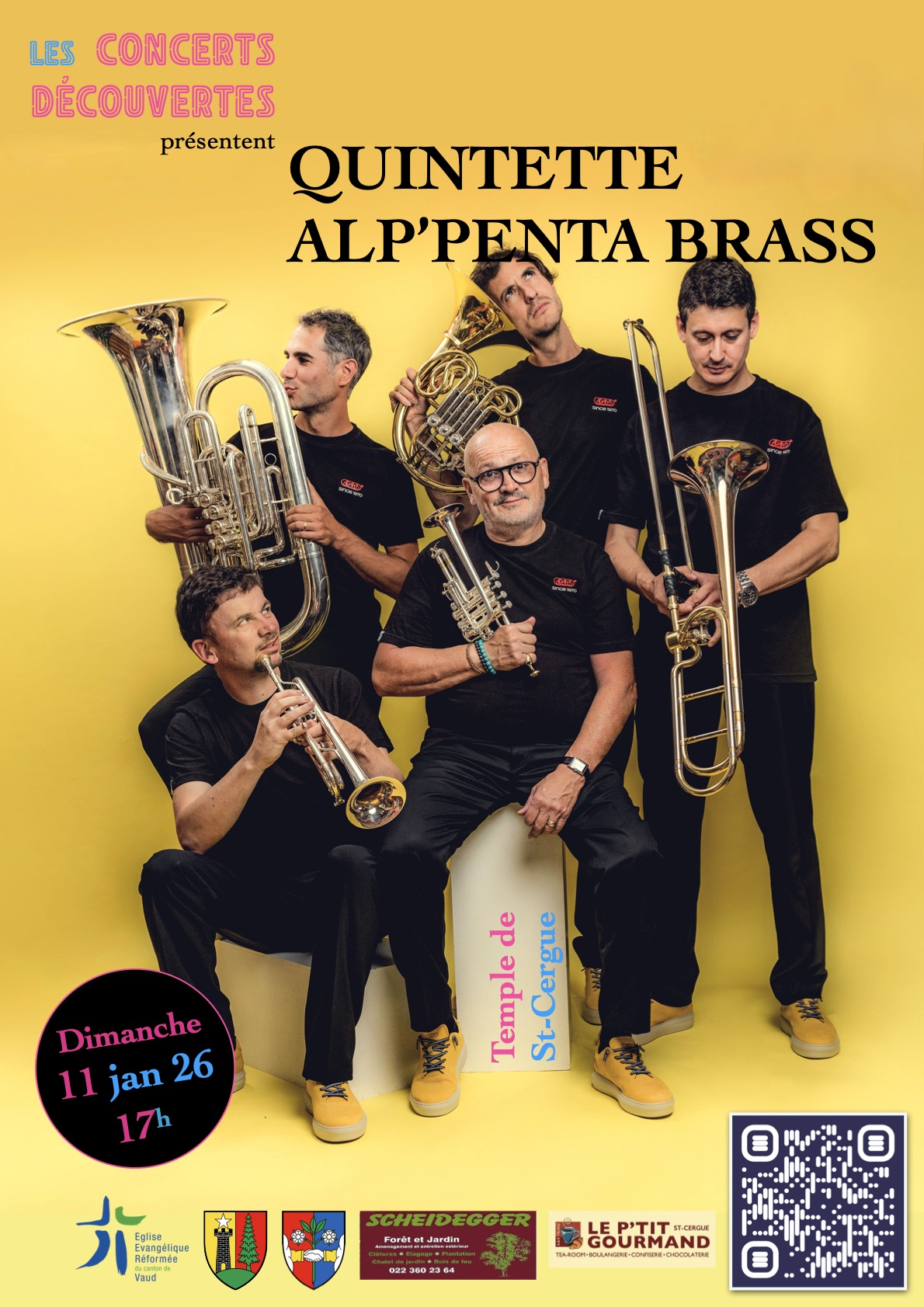 Fondé en 2022 le quintette de cuivre Alp’Penta Brass rassemble cinq musiciens de la région des alpes Franco-Suisses, tous diplômés de hautes écoles suisses ou de conservatoires supérieurs français.